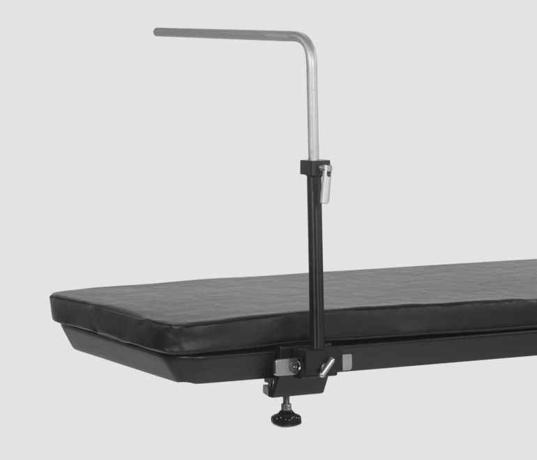 - Rail Mounted I.V. Pole keeps the floor clear for easy access of imaging devices