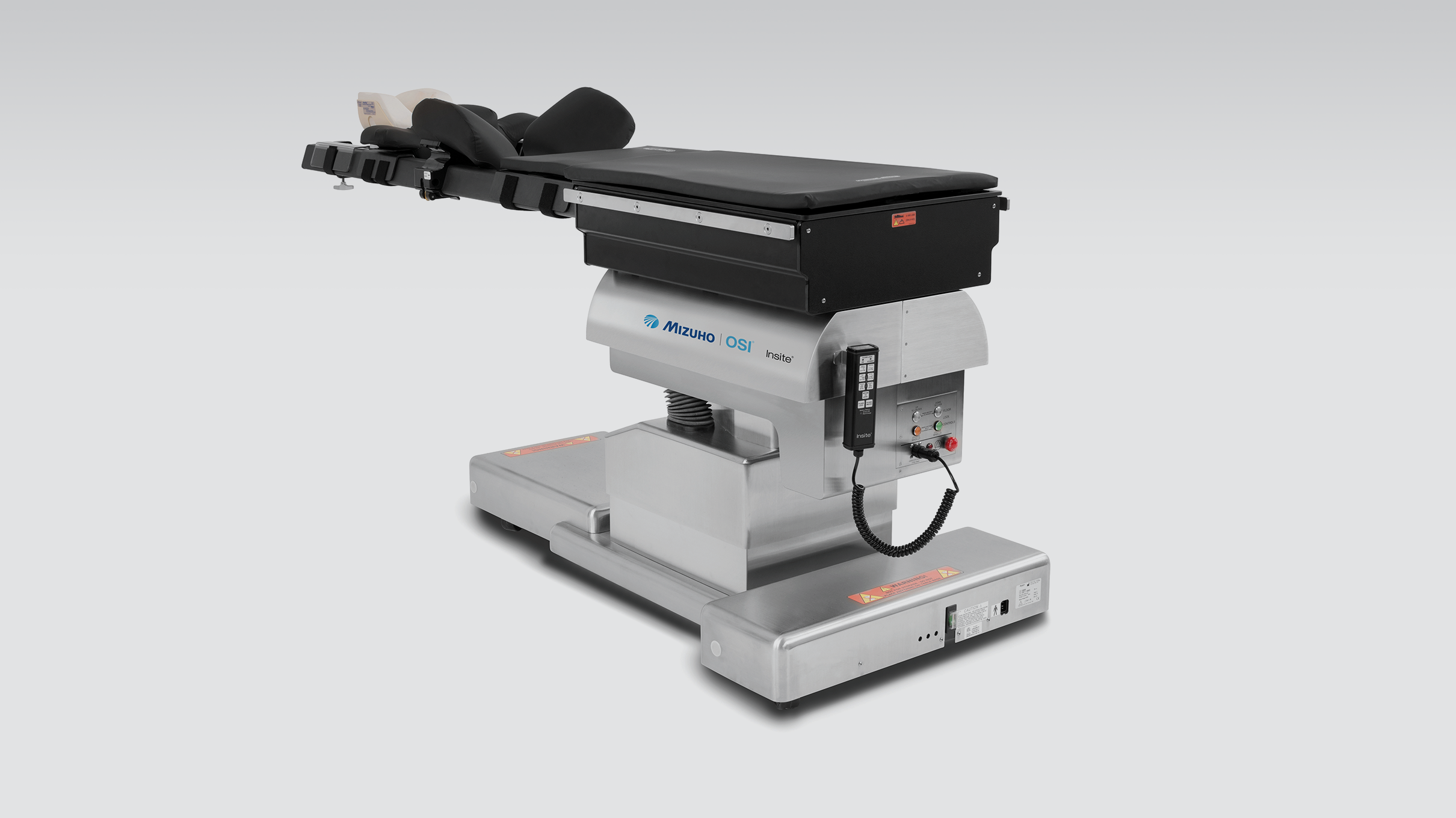 - Backlit hand pendant controls all table functions, including floor locks, height, lateral roll, Trendelenburg/ reverse Trendelenburg and return to level
