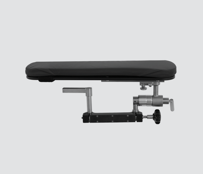 Permits unrestricted access for surgeon and C-arm