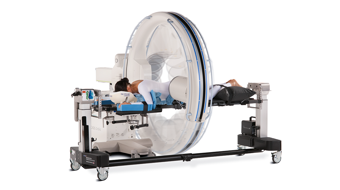 - Dual column design for easy C-arm and O-arm® access