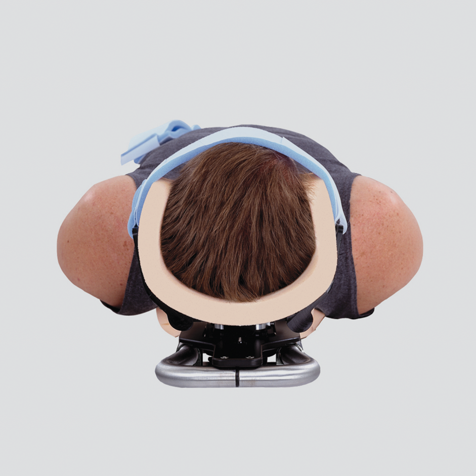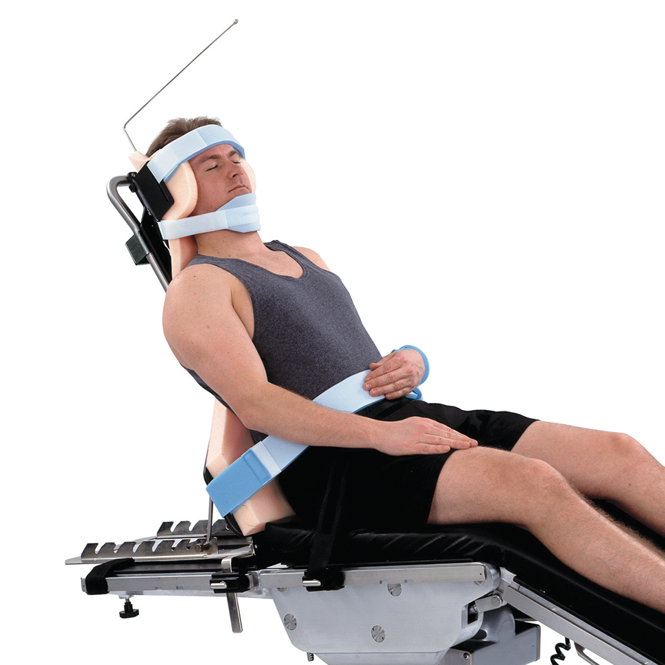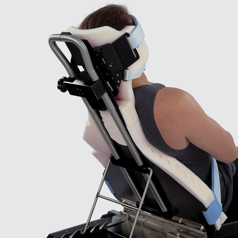 • Adjustable cervical flexion – headrest provides 4” (10.2cm) of anterior translation and accommodates kyphotic patients